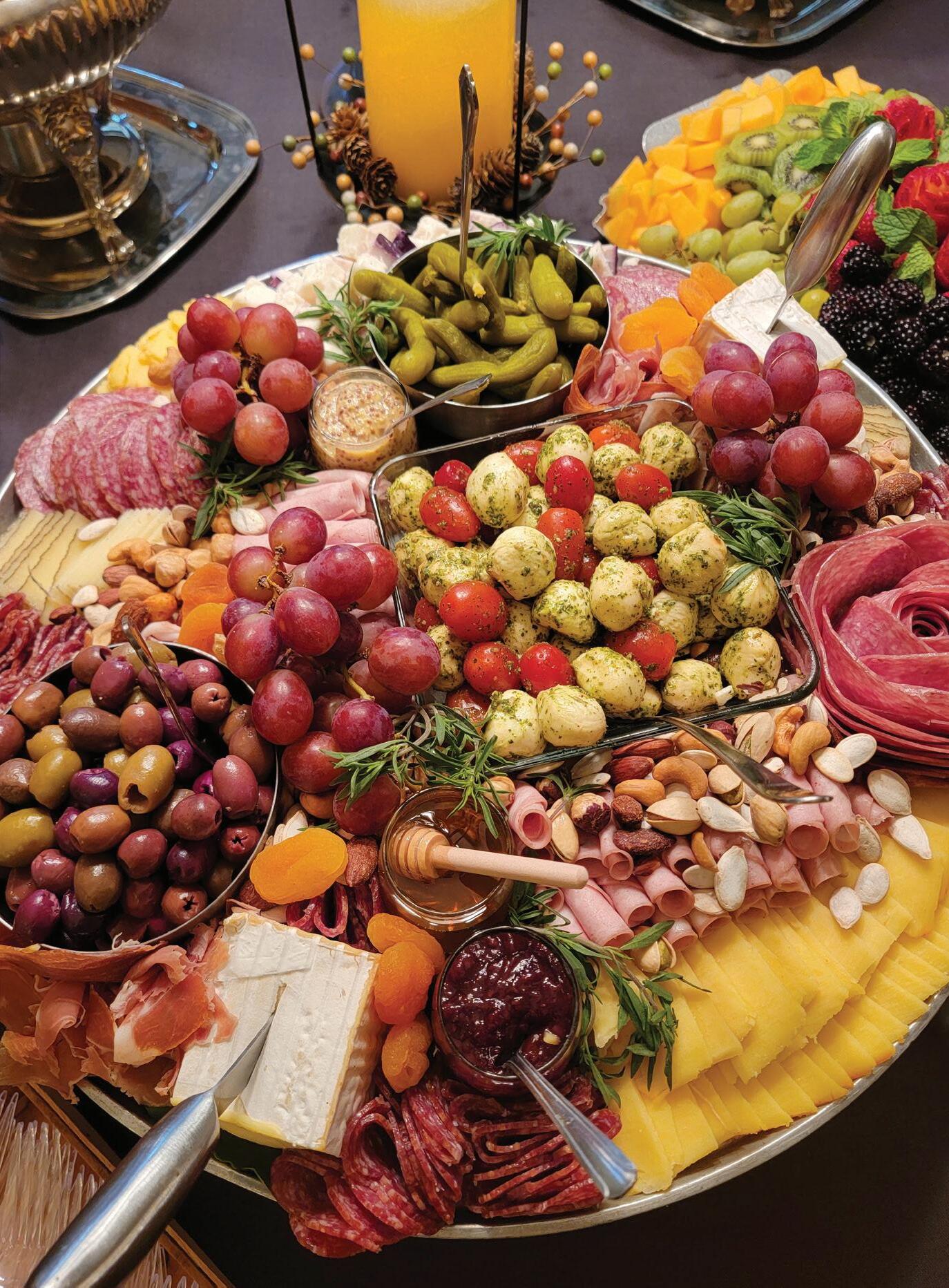 And then, there are the grazing tables. If you’re not familiar with the concept, think of a charcuterie board on crack. They are so impressive that they can serve as both buffet and centerpiece. Guests mingle as they craft their perfect plate of meats, cheeses, olives, nuts, dried fruits, crackers and breads, veggies, hummus, specialty mustards, jams, and more. The small team recently put together a grazing