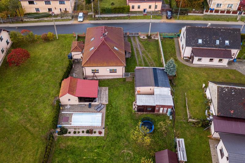 části obce Oldřichov v okrese Tachov. Dům je cihlový a ve velmi dobrém stavu, což zajišťuje dlouhou životnost a pohodlné bydlení. Celková plocha pozemku činí 1 421 m², takže zde nechybí dostatek prostoru pro venkovní aktivity i relaxaci. Na zahradě se nachází krytý bazén o ploše 18 m², ideální pro osvěžení během letních dní. K domu