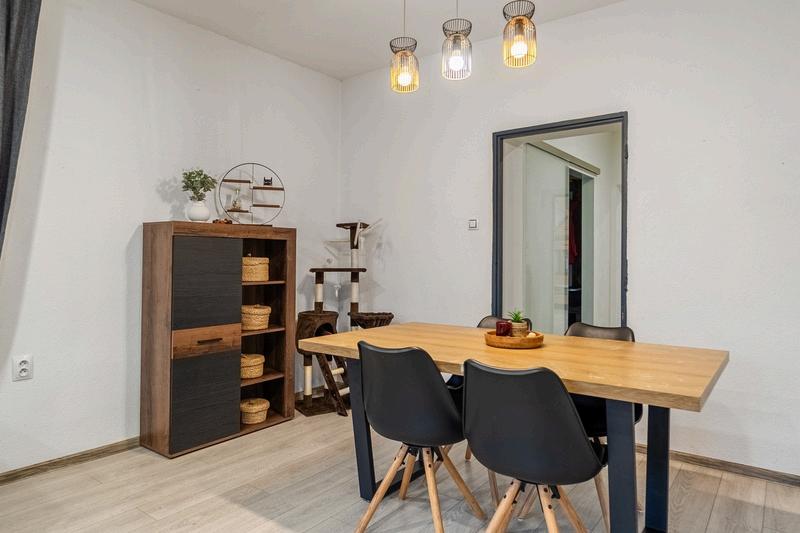 dále patří krytá pergola, která nabízí příjemné místo pro rodinná posezení nebo grilování s přáteli. V přízemí domu se nachází prakticky řešené obytné prostory poskytující dostatek místa pro každodenní život i odpočinek. Najdete zde moderní kuchyň, obývací pokoj s jídelní částí, pracovnu, ložnici, dětský pokoj, koupelnu, samostatné WC a spíž pro další úložné prostory. V podkroví jsou umístěny tři další pokoje, které lze využít jako ložnice, dětské pokoje nebo pracovny. Plastová okna přispívají k dobré tepelné izolaci a komfortu bydlení. O vytápění se stará tepelné čerpadlo doplněné o kotel na tuhá paliva, což zaručuje úsporný a spolehlivý provoz. K domu náleží také sklep o velikosti 8 m² a garáž pro dvě vozidla, která poskytuje pohodlné parkování i ochranu před počasím. Dům je částečně vybavený, takže nový majitel si může interiér upravit dle vlastního vkusu. Dopravní dostupnost je výborná – dům je napojen na silniční síť, v dosahu je MHD i autobusová doprava, což umožňuje snadné spojení s centrem města i okolními obcemi. Samozřejmostí je napojení na kanalizaci a veřejný vodovod, které zajišťují komfortní bydlení bez starostí. Tento dům představuje ideální volbu pro rodinu, která hledá prostorné, klidné a komfortní bydlení v krásném prostředí. V případě zájmu o prohlídku nás neváhejte kontaktovat.