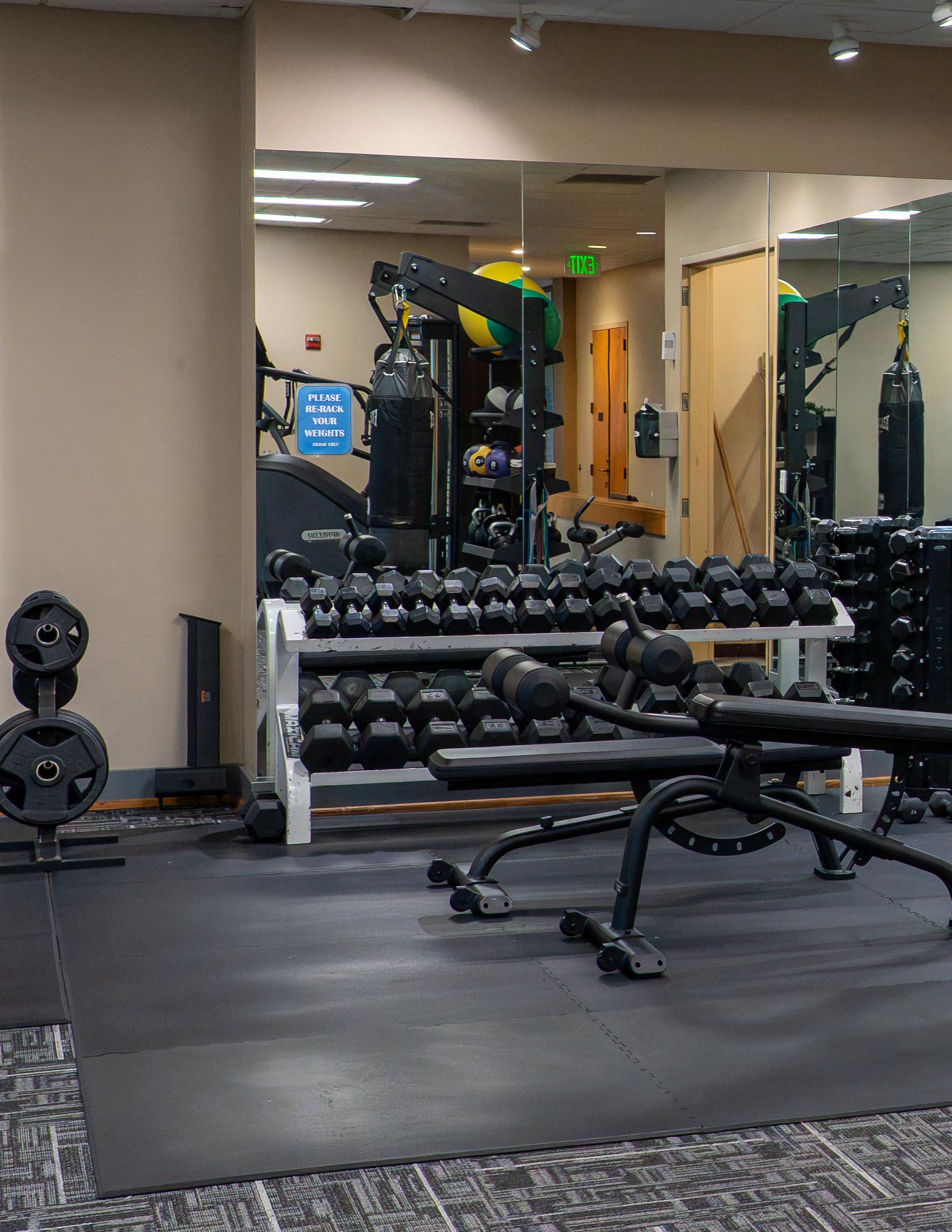 Appropriate workout attire is acceptable in the fitness facility. Shoes must be worn at all times.
