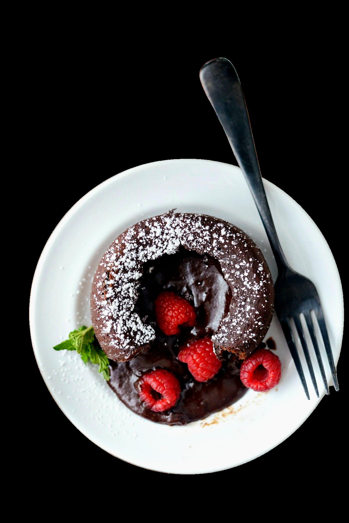 The edges of the cake should be firm but there should stillbealittlewiggleorsoftnesstothetop Becarefulnot toovercookthecakesorthecenterwillbesolidandnot gooey Onceready,removethemfromtheovenandlet them cool for about 1-2 minutes before turning them over onto a plate so they break free from the ramekin. These desserts should be served immediately and you can garnish numerous ways Of course dust with the powdered sugar and also add some fresh fruit like raspberries or strawberries and even fresh mint sprigs You can also serve it with a scoop of vanilla ice cream on top with some chocolate syrup drizzled over it Be creativeandhavefunwithit