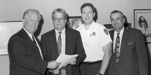 This is the first photo in the Oklahoma Firefighters Museum collection of Tulsa and OKC Fire Chiefs together.