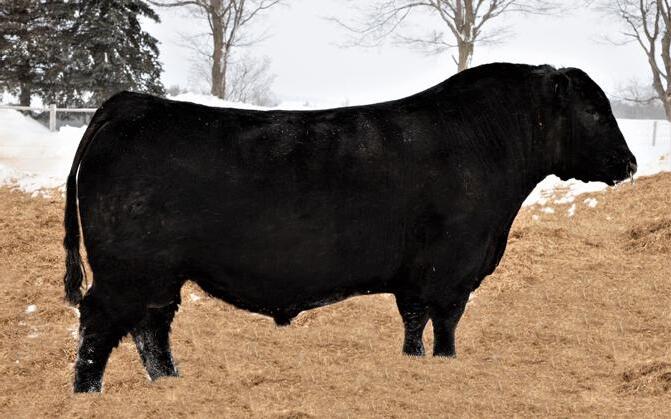 This This performance bred bull has an ass two axe handles wide, a top like an airport runway and more rib than a Louisiana BBQ. Beautiful extension and very smooth, Talladega’s high end frame score ensures he will mature into one of the biggest bulls in the breed. The time has come for a bull like 11J. Described as Rob Harasymchuk at INC Cattle Co as the best calf to ever come out of their program, I would not take those words lightly! US Qualified.