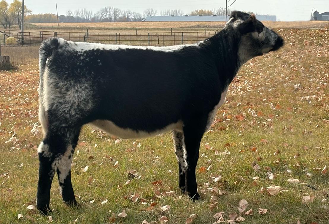 This young female is very cool made, and backed by some of the elite females in the Speckle Park breed. We expect this young female will continue to imporve as she matures. Colton has been hard at work setting her up for her next young exhibitor. Come check her out at the Polzin Cattle Stalls.