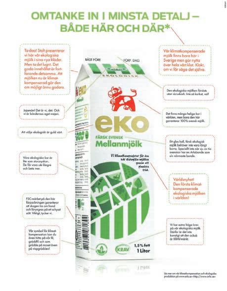 Arlas reklame for den klimakompenserede økomælk i det seneste nr. af det svenske magasin Ekologiskt Lantbruk.