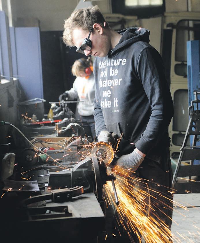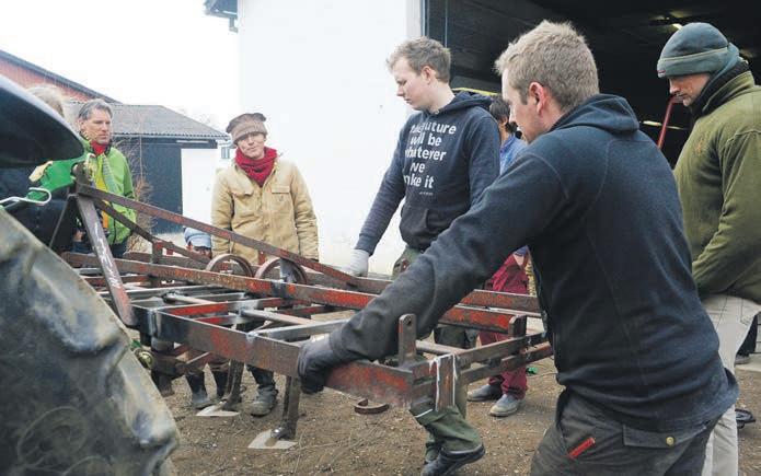 Det var helt i ’Bonderøvens ånd, da produktionsledereleverne på Kalø Økologisk Landbrugsskole for nylig gik i værkstedet for at bygge en jordløsner. Det var nemlig ingen smutveje eller smarte præfabrikerede løsninger at ty til. Ud af gamle maskinstumper og forhåndenværende jern lykkedes det eleverne med vilje, vinkelslibere, svejseapparater og støtte fra gæstelærer Frank Erichsen at bygge en jordløsner helt fra bunden. Sporbredden på en traktor blev øget, og så var de klar til at lægge sporene ud til pløjefri dyrkning af tre grøntsagsbede.