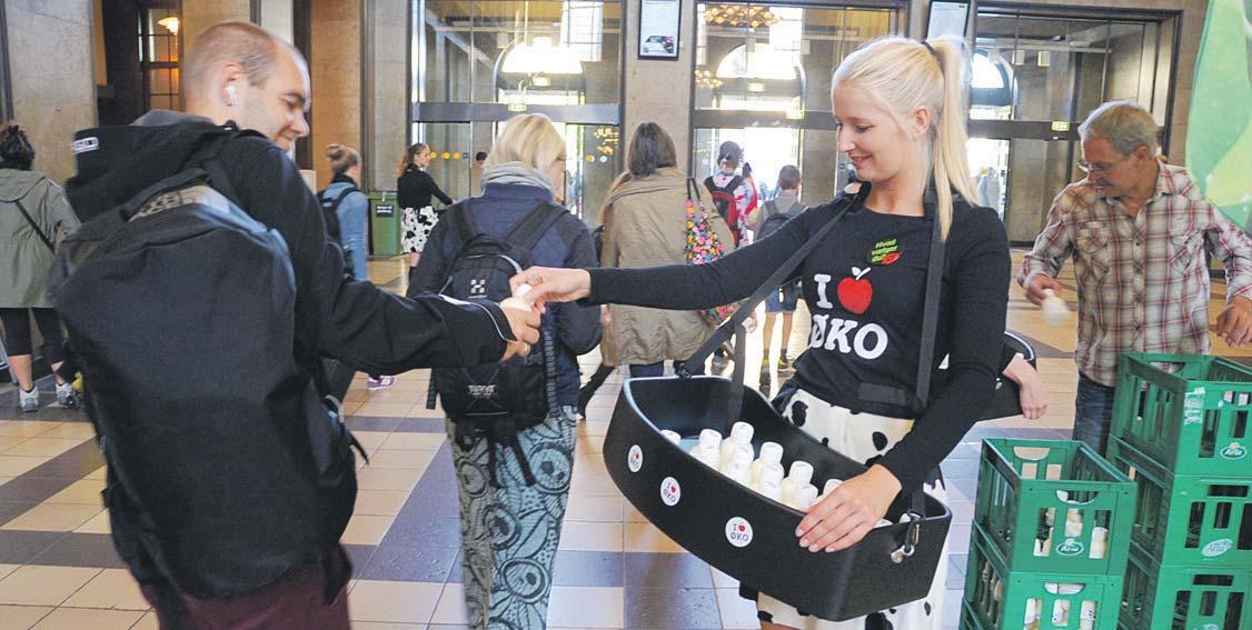 mælk til morgenfriske århusianere på banegården i Aarhus. Dermed markerede de, at Den Økologiske Uge er skudt i gang.