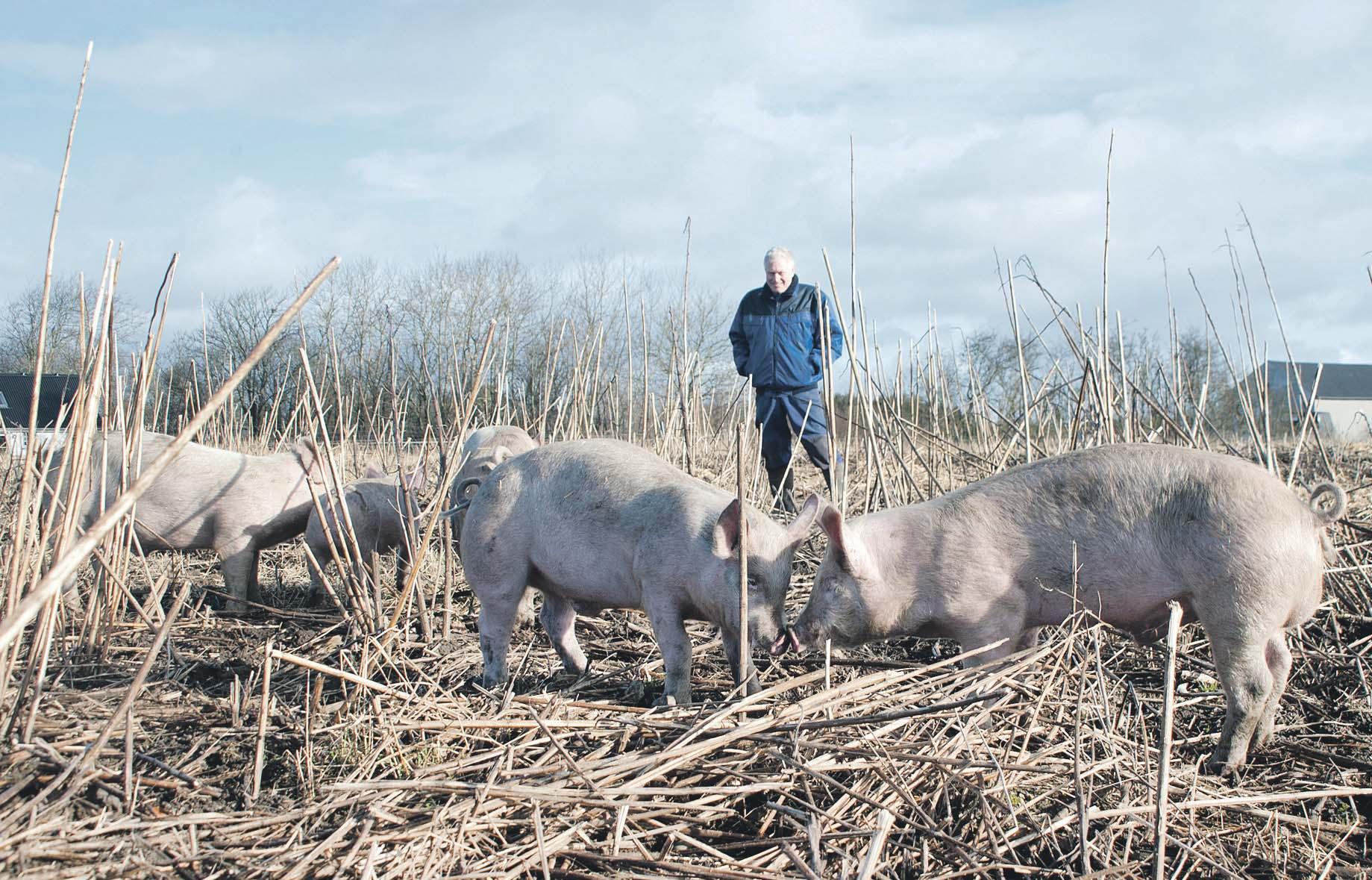 Karl Schmidt har ikke kastreret grise i et halvt år. Hans ornegrise er med i forsøg, der skal vise, om jordskokker kan modvirke ornelugt