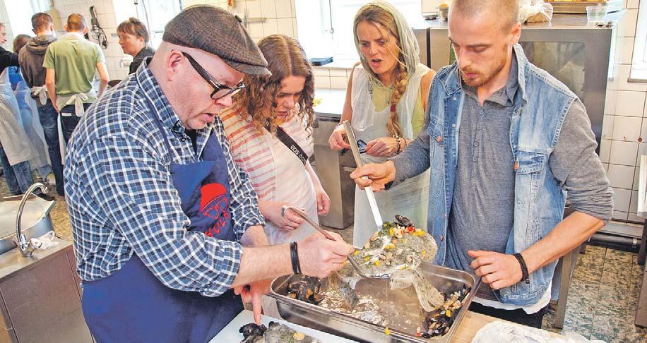 - Så er der fanden galme kærlighed - med stort Ø. Kalø, I stjal mit hjerte. Så mange vilde unge, der tror på fremtiden og landbruget – tak! Ordene stammer fra tv-kokken Claus Holm, som sidste fredag agerede kulinarisk inspirator, da eleverne på Kalø Økologisk Landbrugsskole kreerede et festmåltid for at fejre, at skolen sidste år vandt Store Smagedagsprisen 2013. Gevinsten var en dag med Claus Holm i køkkenet. Foto: Jakob Brandt