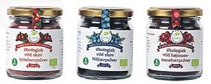 Som en del af Biogans skovmad-serie kan man få tre typer pulver af skovbær – Tranebær, Tyttebær og Blåbær – til smoothies, i og på kager, på yoghurt, i marinader og meget mere.
