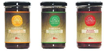 drager med hovedingrediensen i tre nyudviklede rabarbermarmelader.