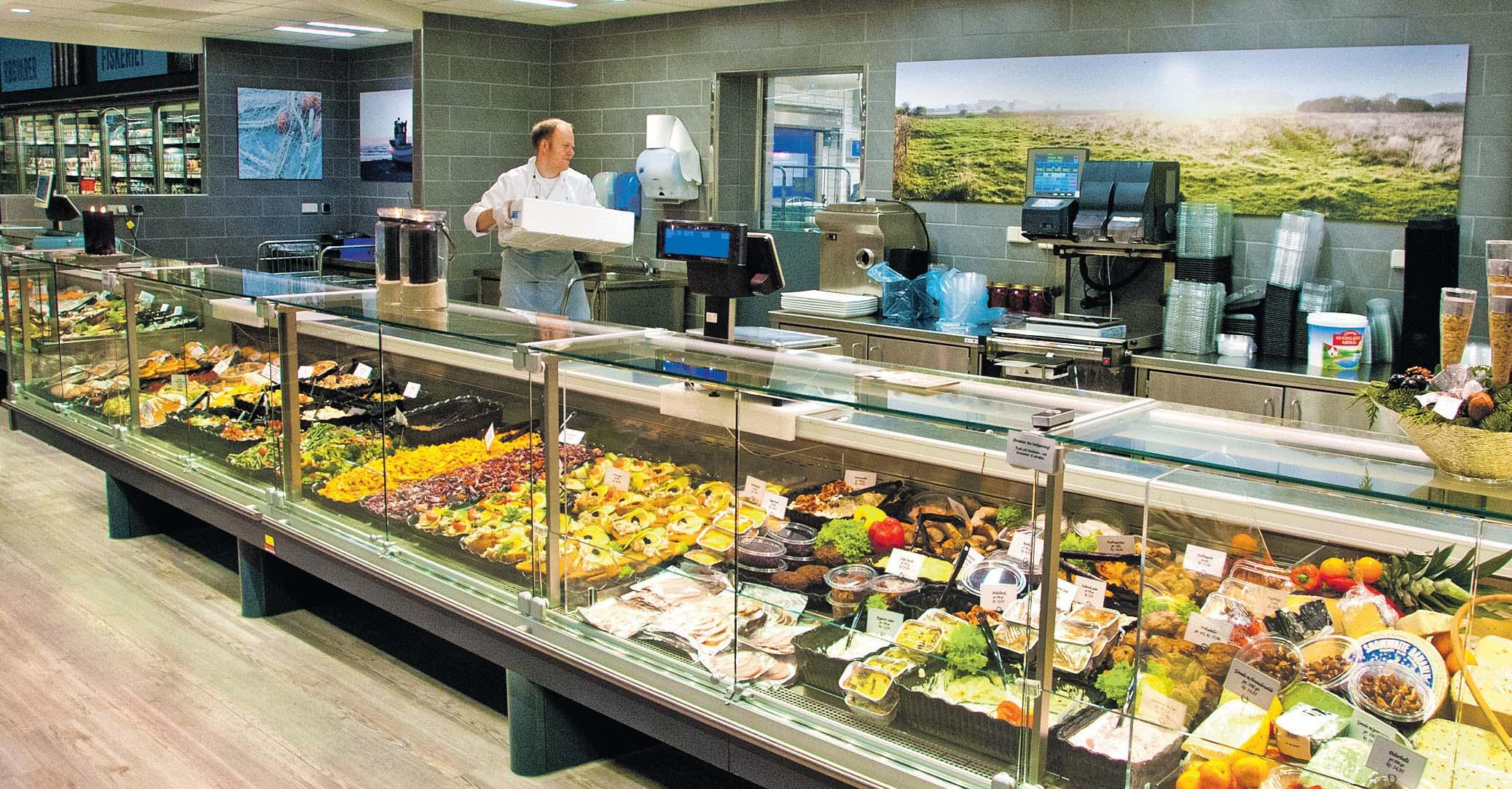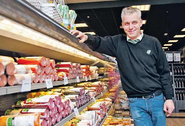 Stærk på fersk kød Netop når det gælder fersk kød og forædlede kødprodukter, har butikken en skarp pro l med eget pølsemageri, men det brede sortiment af ferske udskæringer og hjemmelave-