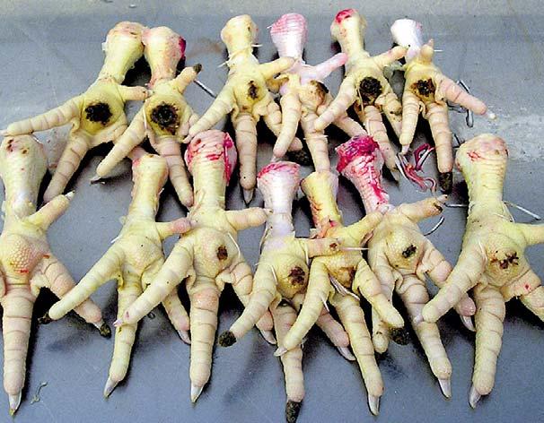 Ammoniaksvidninger på fødderne er et problem i den økologiske slagtekyllingeproduktion. I 2014 var føddernes tilstand kun tilfredsstillende nogle få sommermåneder