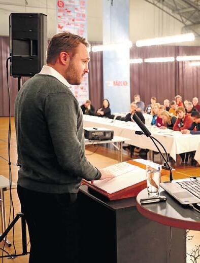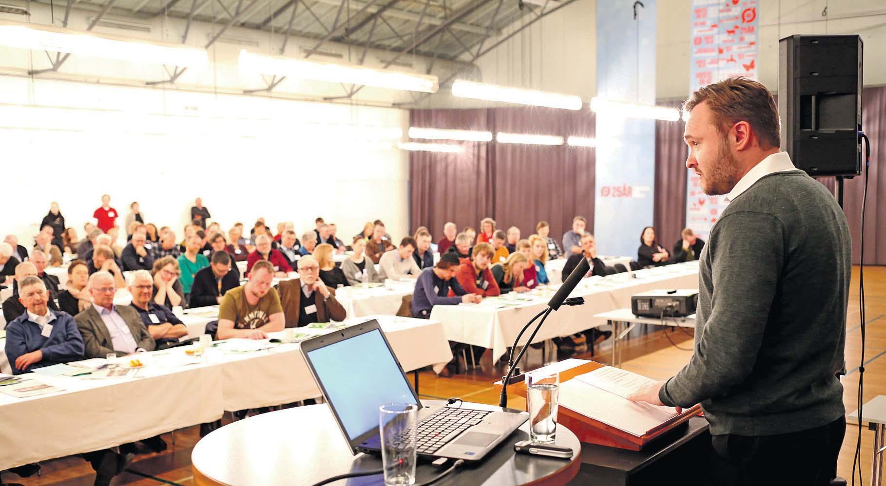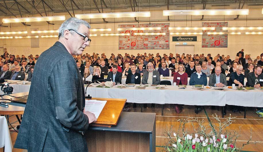 Per Kølster havde næsten 400 tilhørere, da han fremlagde bestyrelsens beretning på generalforsamlingen i Økologisk Landsforening. Foto: Jakob Brandt