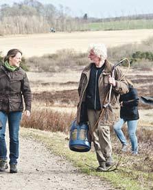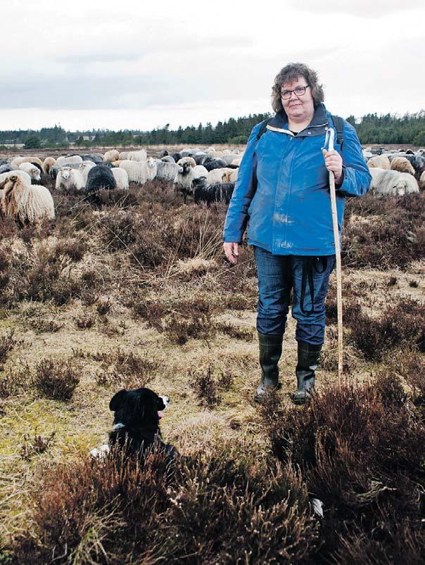 Geeke Jonker vandrer med stav og hyrdehund de vestjyske heder tynde i spidsen for hundredvis af får