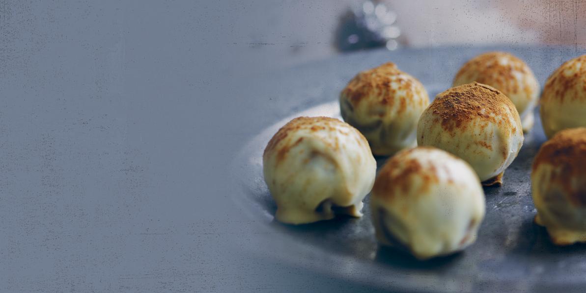 Dyp kuglerne i den smeltede chokolade og sæt dem til tørring på et stykke bagepapir. Drys kuglerne med lakridspulver, inden chokoladen er helt størknet.