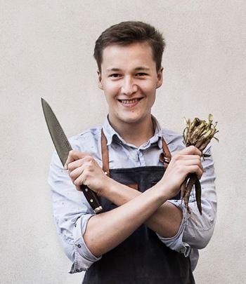 er kokkeelev hos Restaurant Hærværk i Aarhus, som har guldmærke. Pt. har de 94,3 % økologi i køkkenet. Se de over 2100 øko-spisesteder på www.oekologisk-spisemaerke.dk.