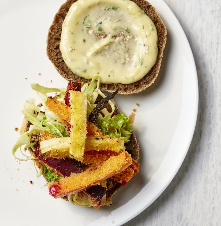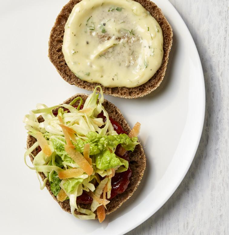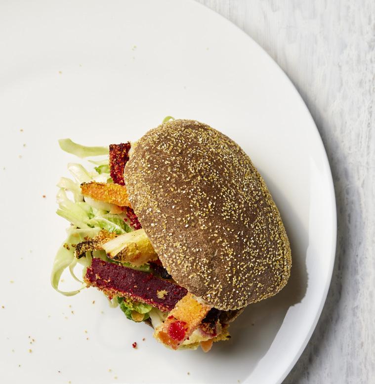 Tænk en burger som sæsonmad. Uden for tomatsæsonen kan I erstatte tomaterne med fx stegte rodfrugter, mens en lækker bøftomat kan være bøf nok i sig selv om sommeren.