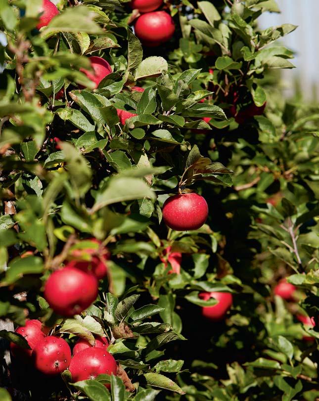 blade svarende til et A4-ark. Det er det, jeg rådgiver en økolog om at tyndekemidler til at holde skadedyr og svampe på et lavt niveau. Derfor får de en langt større høst per træ. Men altså også mindre smag i de æbler, de høster, konstaterer Maren Korsgaard.