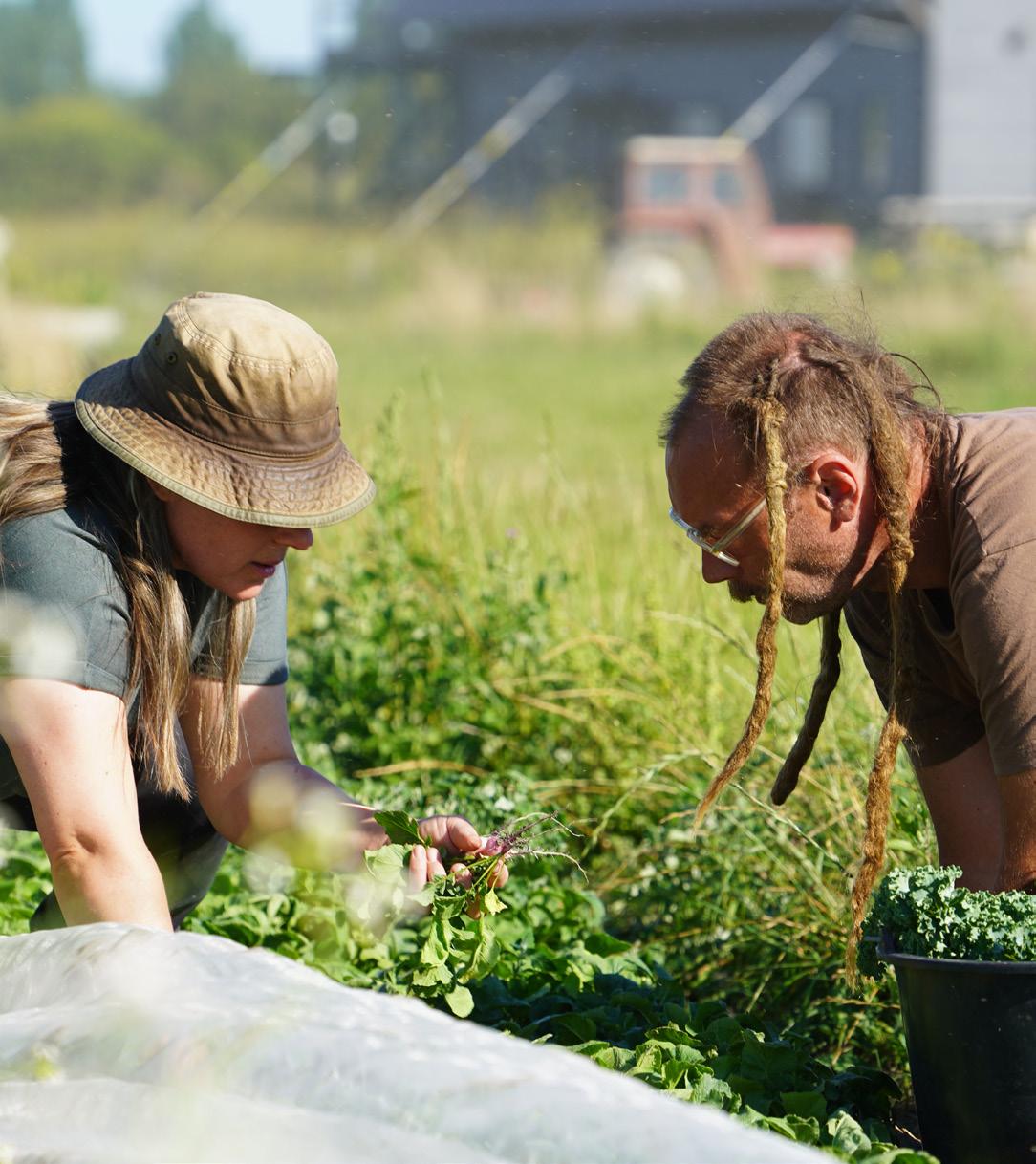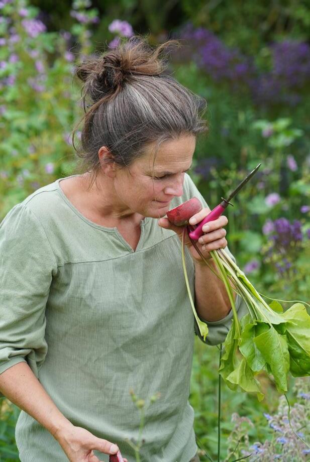 I magasinets tema om at skabe det gode måltid, har vi givet god plads til tre fagfolk, der på hver sin måde inkarnerer økologiens principper og dyrker dem i deres måltider. Økologiformidleren og selvforsyneren Mia Stochholm udtrykker det sådan her: ”Økologi handler om at give plads til andre end mig selv.” I hendes store køkkenhave får selvsåede solsikker og andre blomster ofte lov til at stå, selv om de gør hendes høst af stangbønner eller squash vanskelig. Inde i køkkenet elsker hun at improvisere og overraske både familien og husets gæster med sæsonretter baseret på spændstigfriske grøntsager. Rikke Thorøe Grønning driver sammen med Ben Edlund take away- og spisestedet Good