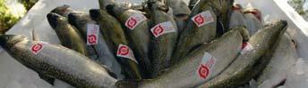 Nu kan du købe økologiske, røgede ørredfileter fra Danmark. Fiskene opdrættes i økologiske dambrug og forædles hos Danforel. De er opdrættet helt på linje med fx grøntsager efter de økologiske principper, og det betyder bl.a., at fiskene kun har fået økologisk foder, og at produktionen foregår skånsomt og belaster naturen mindst muligt. De røgede, økologiske ørredfileter venter på dig i køledisken hos kvickly, kvickly X-tra og SuperBrugsen. Pris: En pakke med 100 g koster 27,95 kr. På www.eco-aquafish.dk finder du en liste over de supermarkeder, specialbutikker og producenter, hvor du ellers kan købe økologisk fisk.