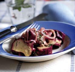 Bagte rødbeder har en smag, der varer vinteren ud. Bag dine øko-rødbeder hele i ovnen på 180-200 grader i 50-60 min. Mens de bager, blandes en klump blød smør, fx fra thise, med frisk timian og revet, økologisk citronskal. Giv godt med peber og lidt salt, gerne jomfrusalt fra Læsø Sydesalt, der har flotte pyramideformer. Stil smøren på køl. Pil skallen af rødbederne, når de er bagt. Spis smøren til dine rodfrugter, og vælg gerne stegt lam som tilbehør.