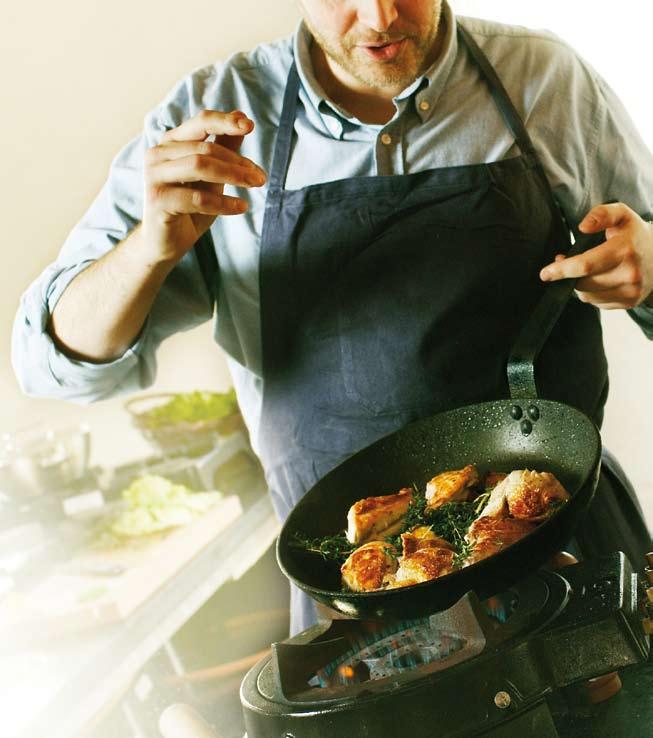 Gaskomfuret har vi, fordi jeg elsker at lave mad over flammer og bål i naturen Det er en hyldest til urgastronomien – den nat et lyn slog ned i et træ, og vores forfædre opdagede, at kødet smagte meget bedre, hvis de holdt det ind over ilden og stegte det.