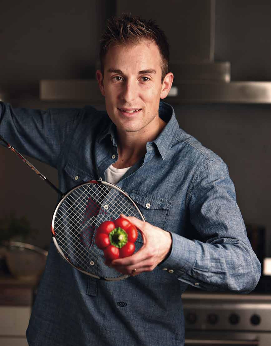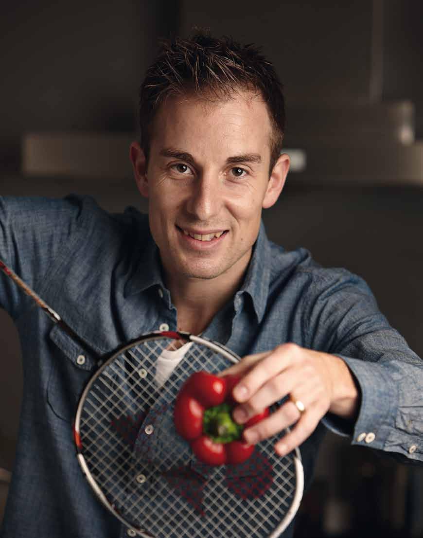 chuck, chuck, chuck! Kniven danser over spækkebrættet og skærer effektivt de friske krydderurter i små fine stykker. Badminton-ikonet Peter Gade håndterer sine køkkenredskaber og de økologiske råvarer med næsten samme ekvilibrisme som de ketsjere og fjerbolde, der har givet ham så mange triumfer på de største badmintonarenaer i verden.