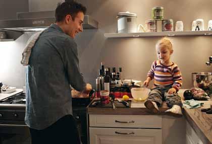 - Se, nu får far ulækre fingre, siger far Peter til Alma, som vist meget gerne vil give en hånd med til madlavningen.