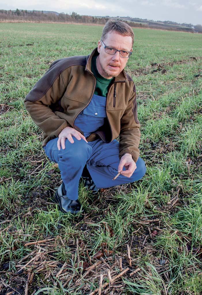 Han eksperimenterer på livet løs i sine marker, og i slutningen af februar, hvor markerne ved første øjekast og for det utrænede øje ligner så mange andre marker, er der syn for sagen.
