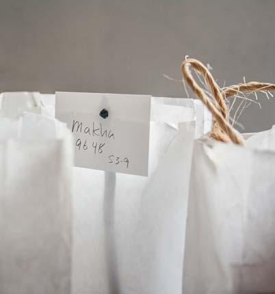 de forskellige sorter, som mængden af hvide papirposer vidner om, at Anders Borgen også er meget interesseret i at arbejde med.