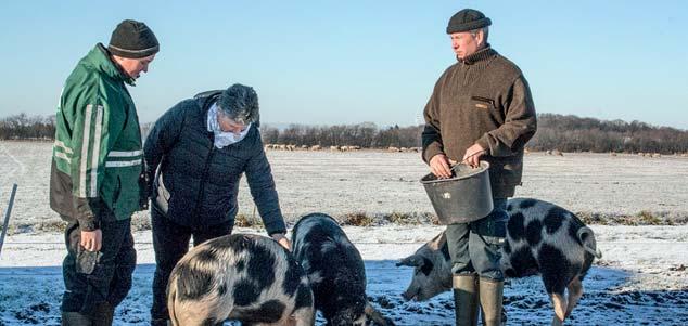 mel dansk landrace. Andre køber kalve, der ellers ville gå til spilde i mælkeproduktionen. Samtidig arbejder vi sammen med landmændene for at opnå det aller bedste kød gennem den rette sammensætning af race, foder, ude- og indetid, fortæller Mikkel Hesselager. Sammen med Spis Min Gris-teamet arbejder han aktivt for at fremme dyrevelfærd og respekt for det enkelte dyr. At mindske madspild er også vigtigt for forretningens koncept, ligesom al produktudvikling foregår med biodiversitet for øje og Mikkel holder nøje øje med den nyeste forskning inden for biodiversitet, sundhed og økologi.
