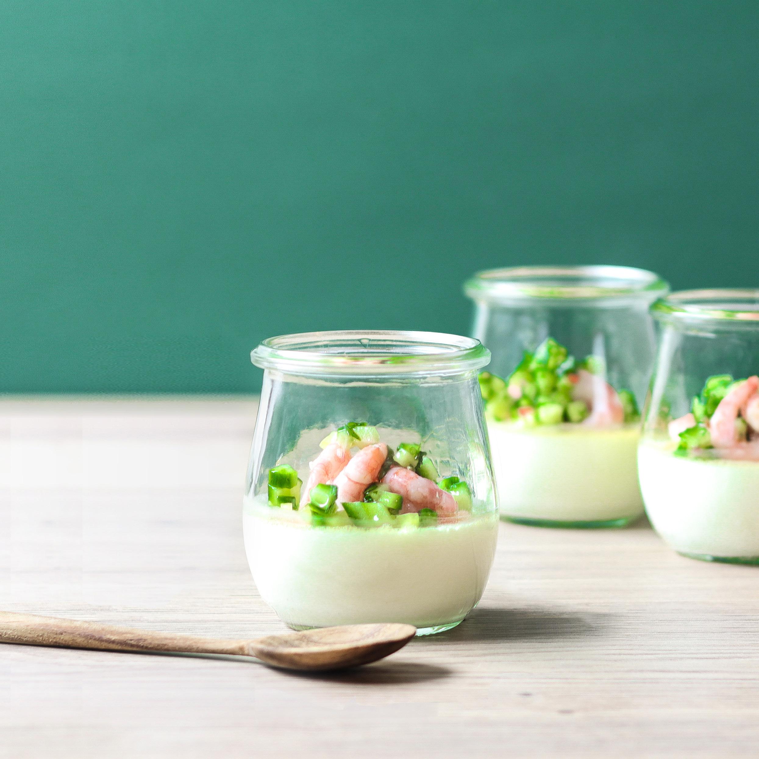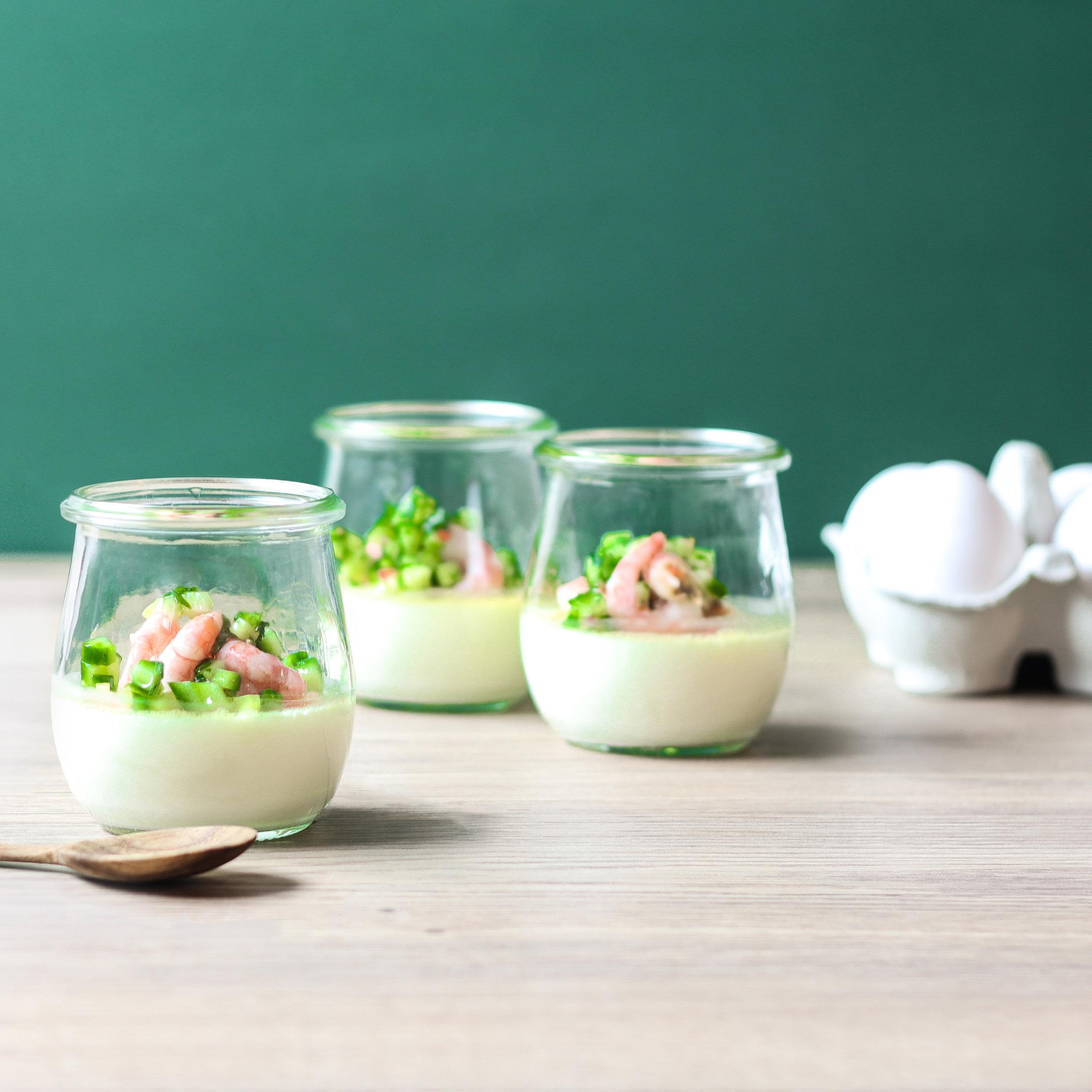 BAGTE ÆG I GLAS MED REJER & GRØN SALSA
