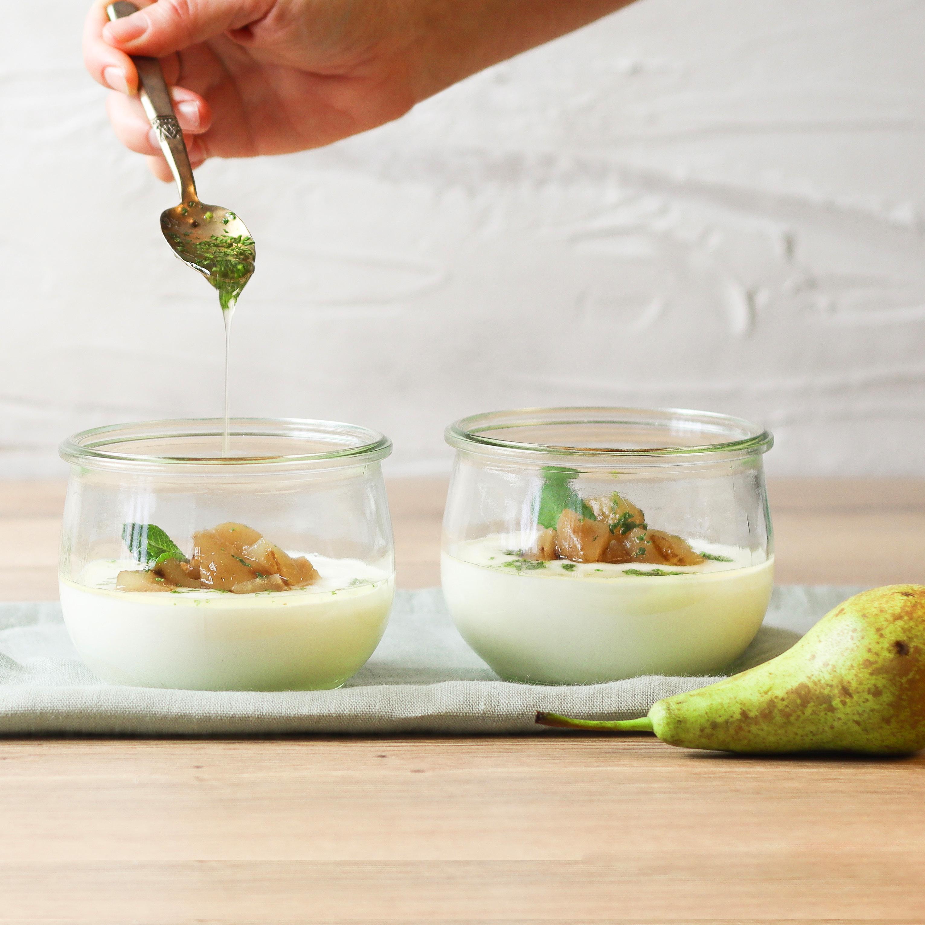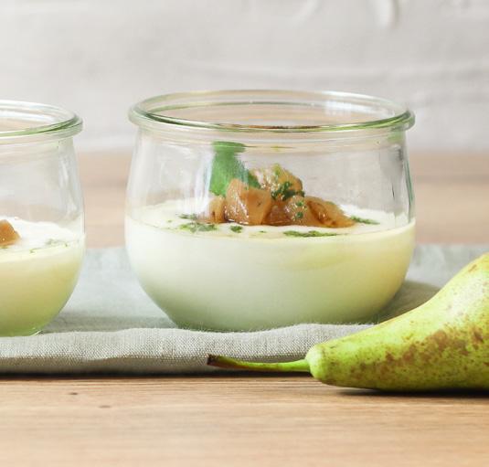 YMER MED GRILLEDE PÆRER & MYNTEHONNING
