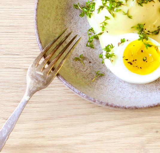 ÆG I MILD SENNEPSSAUCE TOPPET MED KARSE