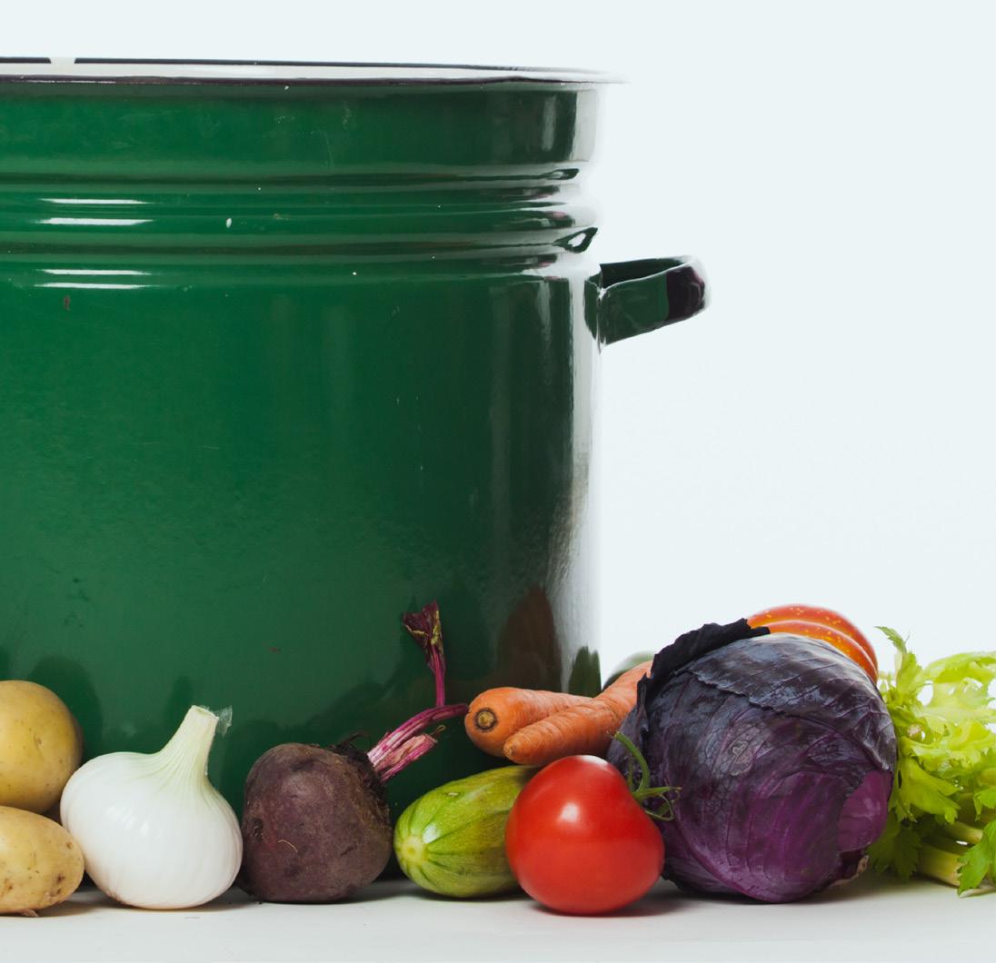 Gryderetter er fantastiske. De er så nemme at smide alt muligt i. For eksempel kan du smide en halv peberfrugt, squash, aubergine eller en slat spinat i en minestrone, chili con carne eller karryret. Minestronen kan krydres med oregano og balsamico, chili con carnen med lidt kanel, mørk chokolade og koriander, og i karryretten kan du bruge soya og masser af karry. På den måde har du tre verdenskøkkener, hvor du kan bruge den samme bouillon og de samme grøntsagsrester i alle tre retter. Der er nærmest ikke en grøntsag, der kan ødelægge det, så længe du holder dig til den oprindelige krydring.