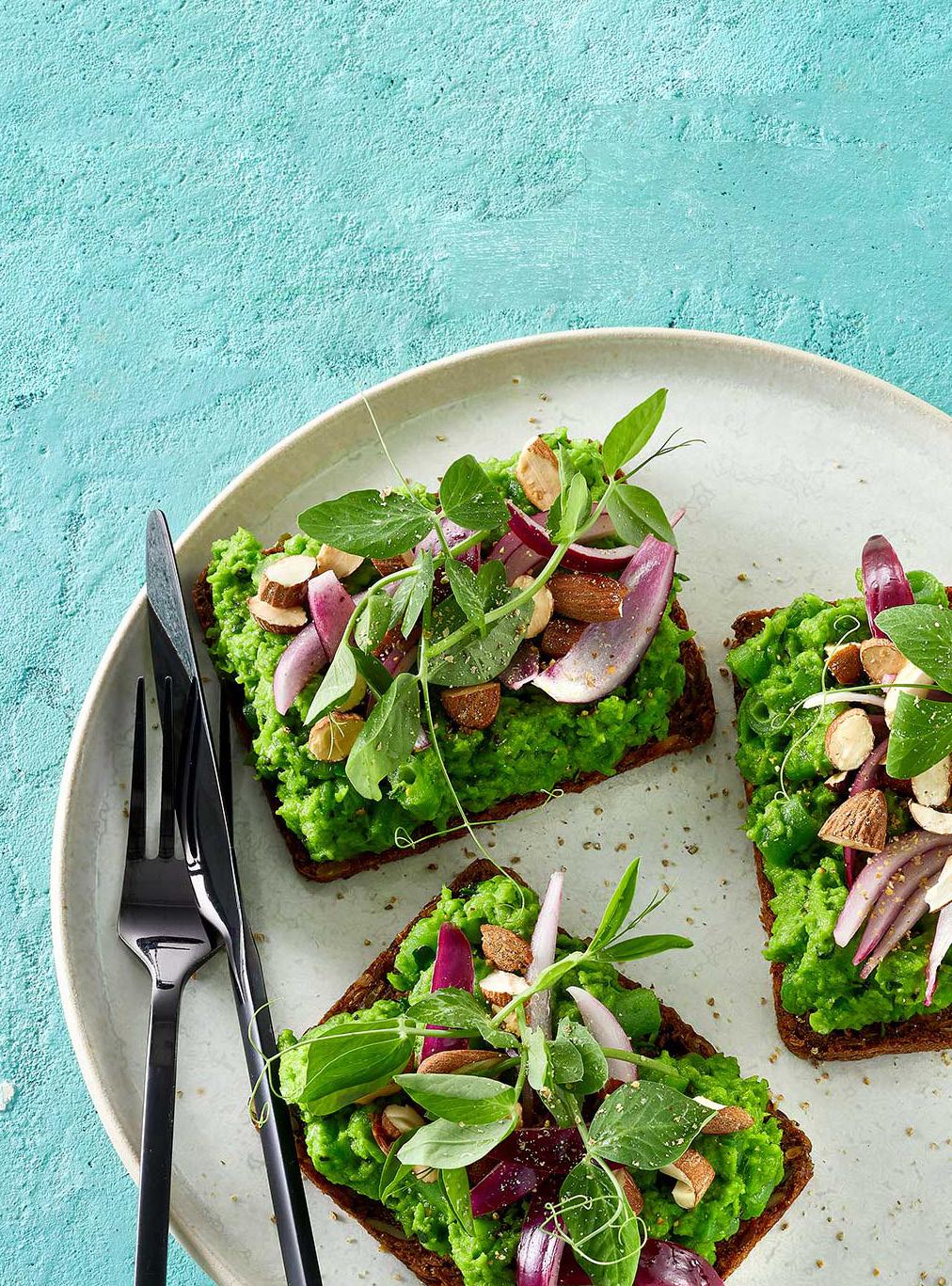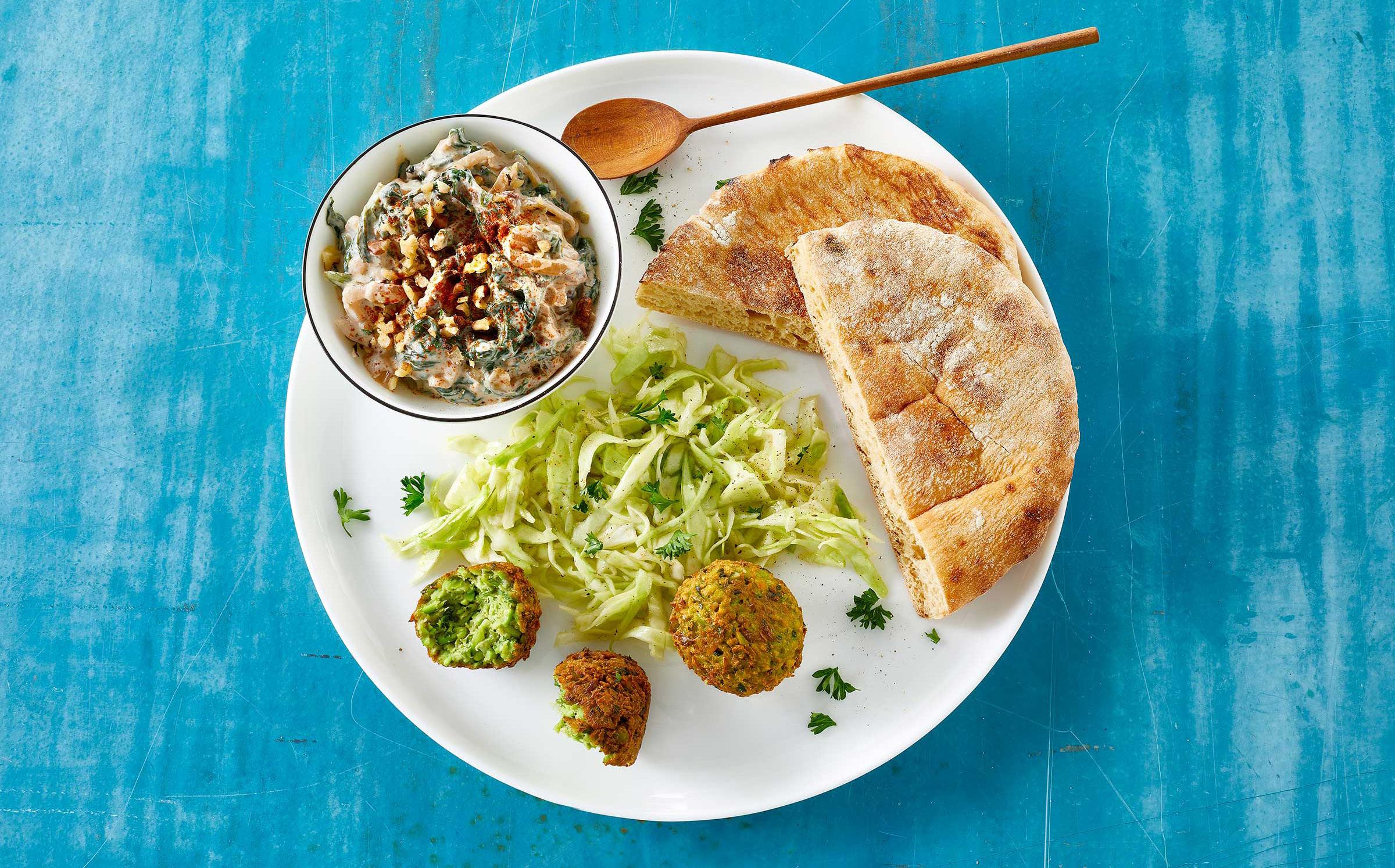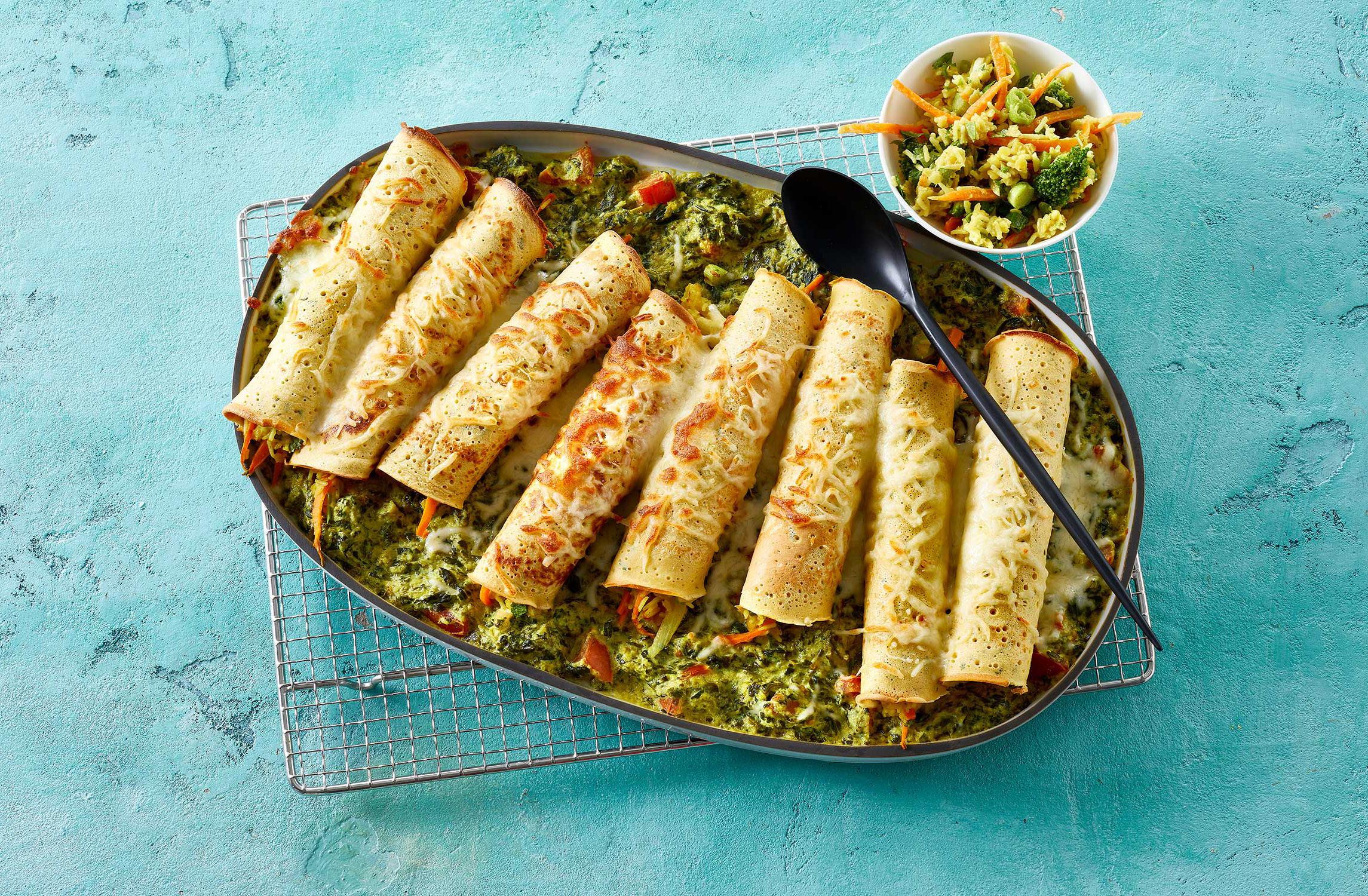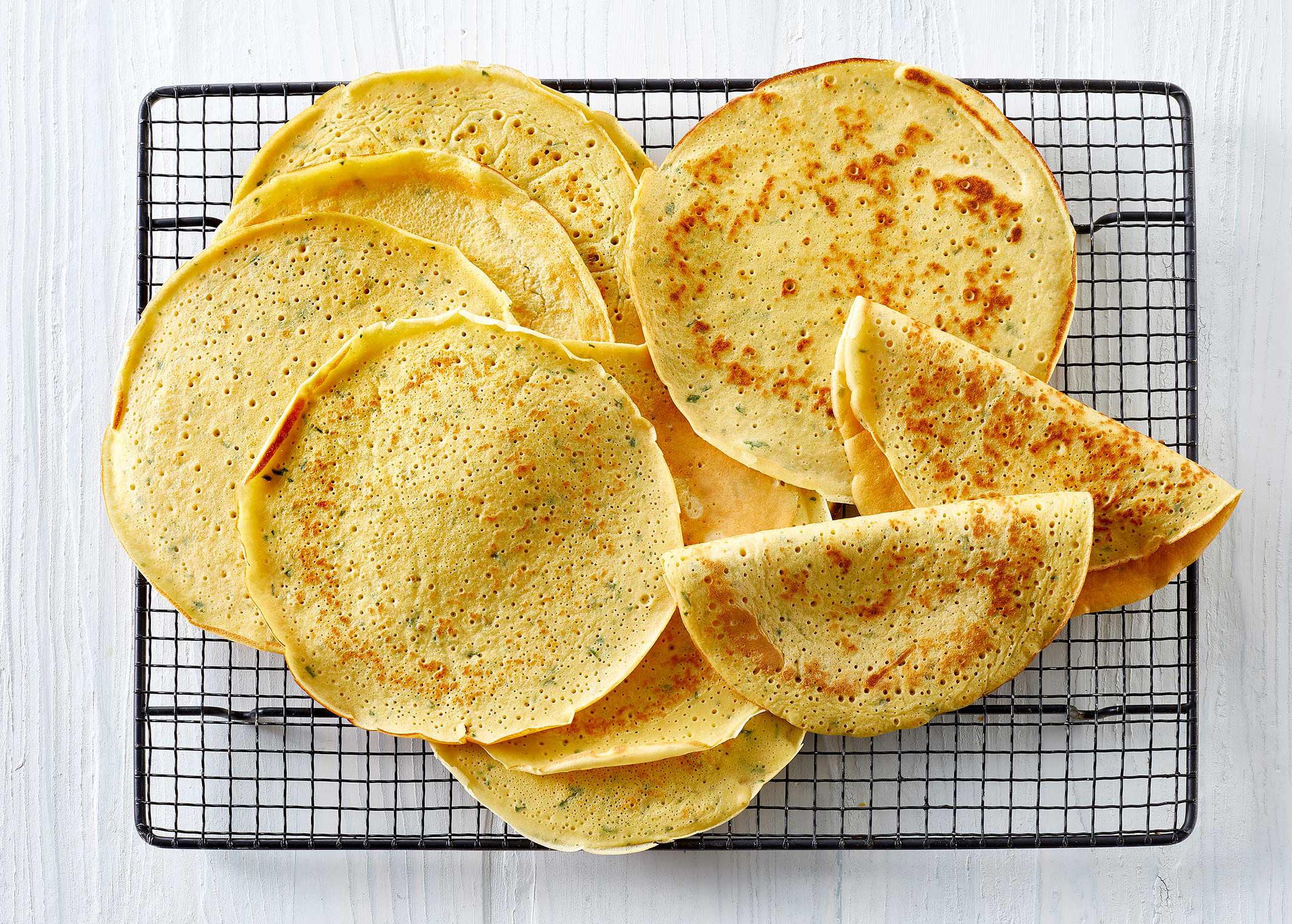 Fyldte kikærtepandekager med grønne flækærter. Se opskrift side 24.