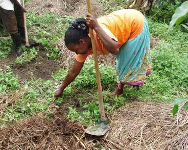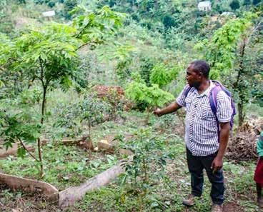 i løbet af tre mdr. Dennis og Jonna har taget lån til skolepenge og køb af en ko. Ifølge Jonna er opsparing og lån samt mindre arbejde nogle af fordelene ved FFLG. Når gruppen udfører gøremål sammen, f.eks. luger bønner, kan de klare hele to acres per dag frem for at det tager mand og kone flere uger. Fællesskab, samhørighed (mananga) og mulighed for mægling i forbindelse med konflikter nævnes også som FFLG fordele. Jonna fortæller, at et lille team af kvinder tager sig af problemer blandt unge, f.eks. begyndende misbrug, som behandles i samtale. Øvrige sociale problemer behandles ligeledes i gruppen, som også kan mobilisere hjælp i tilfælde af økonomiske problemer. Dennis oplyser, at FFLG’erne har udviklet frø-produktion for at udbrede bønneproduktion (sorten Nabé-4). Der er også etableret en frø-bank for lokale afgrøder, bl.a. kaffefrø. Næste skridt bliver at mangfoldigøre Mucuna-bønner, som Dennis har testet med gode resultater. Nu tester han også nye sorter af Arabica-kaffe til lavlandsområder, hvor Robusta-kaffe ellers er normen.