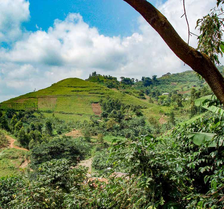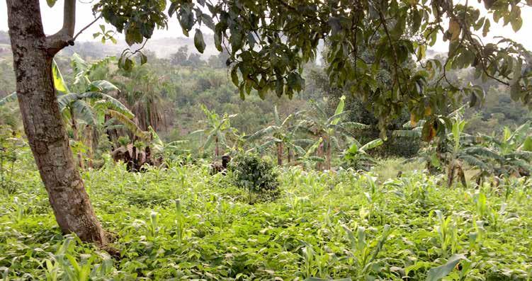gområder oplever lokalsamfundene øget gletsjersmeltning, flere jordskred og mere ekstremt vejr som skybrud og tørke. Ugandas bjerglandskaber er hjemsted for mange vandressourcer, og grønt trædække har altafgørende betydning for deres bevarelse (WWF), som er truet af afskovning. Ud over høje bjergtinder med sne og nationalparker med regnskov, spænder Ugandas natur fra sletter med græssavanne til sumpområder, der reduceres som følge af opdyrkning og nye typer bevoksning. En voksende produktion af te anlægges sammen med plantager af pinjer og eukalyptus med forringet grad af biodiversitet til følge. Landbrug praktiseres i dale, på stejle bjergskråninger, bløde bakker og flade sletter med stor variation i markafgrøder, plantager og skovlandbrug.