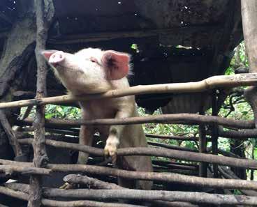 basis-fødevare. Husdyrene begrænser sig til en ged, en gris og ca. 10 høns. Økologi er en indre følelse af at dyrke ”rigtigt”, forklarer Janet, som ikke har lyst til at bruge nogen form for kemikalier i dyrkningen. Det er en udfordring at fastholde og udvikle frugtbarheden i jorden, som dels ligger på en stejl skråning, dels er udsat for meget sol, da der ikke er mange træer. I sæsonen januar - maj 2019 gav bønnerne intet udbytte pga. tørke. Kaffebuskene skal helst gro i halvskygge, men flere steder mangler der træer, der kan skygge, og derfor visner en stor del af kaffebærrene og bliver sorte. Der arbejdes på at supplere gødningen fra de få husdyr med kvælstoffikserende bunddække af Mucuna-bønner, at plante horisontale græsstriber og at etablere grøfter for at holde på jord og regnvand.