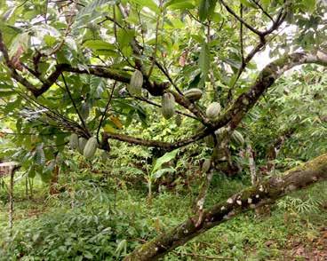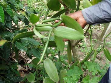 get udgøres af kakaotræer (otte acres). Der beregnes 450 træer pr acre, dvs. ca. 3.600 kakaotræer. Dernæst har vaniljedyrkning stor betydning. Vaniljeplanten er en lian, der vokser på støttetræer, som de suger næring fra. Træerne med vaniljeplanter vokser blandet med kakaotræer, bananpalmer og kaffe. Mugisa og Oliver har 600 vaniljeplanter, ca. 900 Robusta kaffebuske, ca. 100 oliepalmer