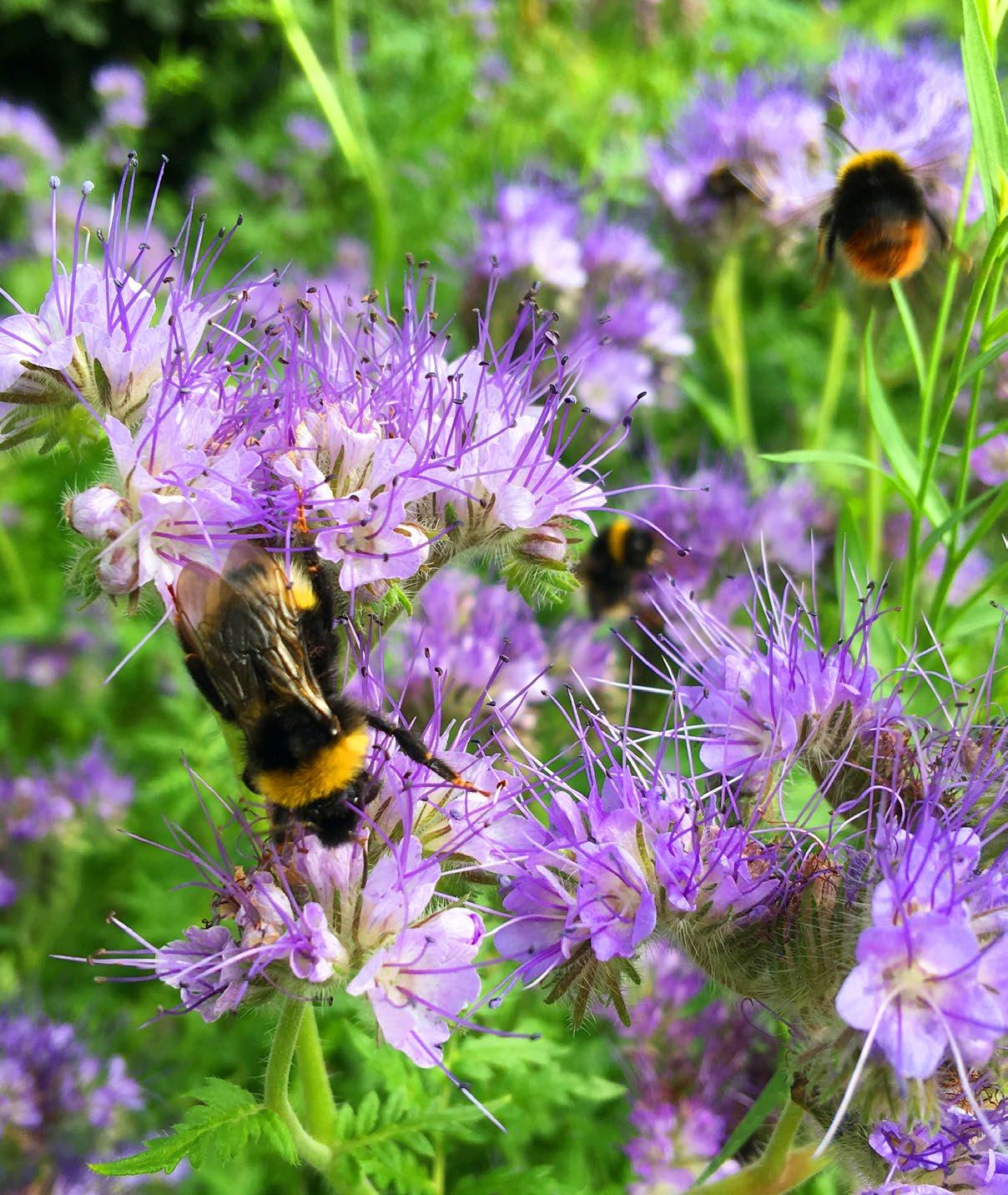 I urterne bemærker du måske en humlebi, der halser fra blomst til blomst. Urterne er vigtige levesteder og fødegrundlag for insekter, der sammen med planternes frø er føde for de dyr, som er højere oppe i fødekæden. Generelt er der 30 procent flere vilde planteog dyrearter på økologisk dyrkede arealer, når man sammenligner med ikke-økologisk landbrugsjord.