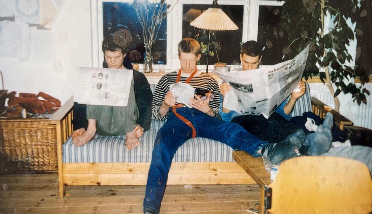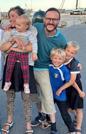 arbejdsmarkedet. Vi spiste sammen i fælleshuset. Jeg smiler ved tanken om de unge udgaver af Thomas, Joakim, Stinus og Keld, der sad side om side i solen i fælleshuset lørdag morgen og læste i hver deres Information. Det med at føle sig alene med familien var forsvundet. Her var det nemmere at have børn og at være familie. Der var en struktur og et fællesskab, som gjorde, at vi levede livet på livets præmisser, og vi var omgivet af mennesker i en tydelig ramme.