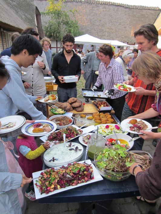 Harmonien i fællesskabet trives der, hvor vi ”lever med det”. Lever med hinanden Jeg tænker, at mange har en detaljeret drøm for fællesskabet; så detaljeret at den indre film kan fremmane eksakte placering af værksteder, fremtidige åløb, trampestier, dyrehold, legepladser. Måske også menneskelig interaktion, der end ikke er sket, men som blot er ønsketænkning, måske forventninger til stemninger, til lyde, til grin. Disse billeder er vores alene, og vi kan ikke overdrage dem til naboen, for naboen har sine egne billeder. Hvis naboen så bygger det redskabsskur nede på hjørnet af fællesarealet. Ja, så passer det ikke ind i mit billede. Redskabsskuret står det forkerte sted, det har de forkerte mål, og det er ikke malet svensk-rødt, som jeg så tydeligt kan se det udspille sig for mit indre. Sådan vil det være; økosamfund er som en collage, brudstykker af drømme, der når drømmene bliver sat sammen, udgør et hele. Sit helt eget hele, der ikke er