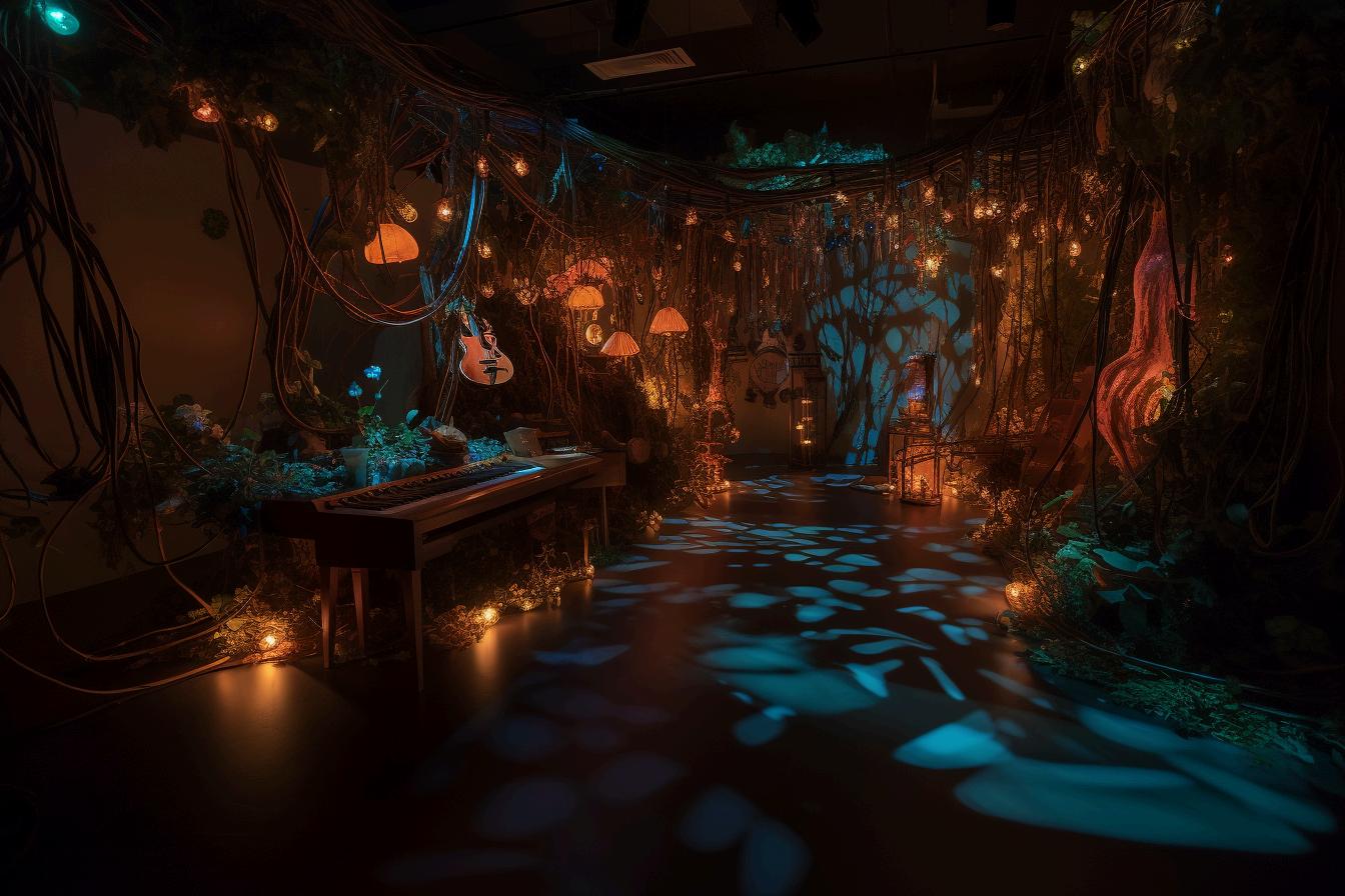 The Wildwoods are the in-between worlds separating our Musical Journey rooms. The music-tech naturalistic spaces provide visitors opportunities to play with sounds by banging on illuminating mushrooms, singing into hanging microphone vines, and much, much more.
