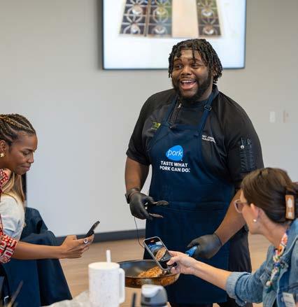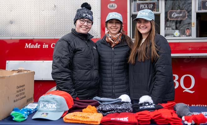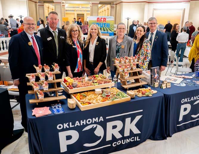 Oklahoma Pork board members Joe Locke, Tom Layne, Dr. Suzanne Genova, Roy Cansler, Cathy Vaughan, and Dr. Donna Drebes used serving at our booth as an opportunity to educate visitors about Oklahoma’s incredible pork industry. As folks hand-picked their delicious pork snacks from our charcuterie spread, we got a moment to share pork’s story in an approachable, bitesized way. Tyson producer Hannah Bevins and Oklahoma Pork’s summer interns Chyann Emerson and Ethan Drake also joined us to promote pork in the scenic State Capitol Rotunda. All together, this biggestever crew of pork industry Ag Day volunteers made an impressive impact serving our industry.