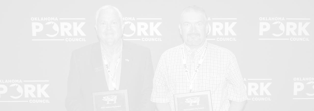 Whendeemedappropriatebyourboardofdirectors,theOklahomaPorkCouncil presents a career achievement recognition known as the Golden Pig Award. This accolade is reserved for leaders who exhibit a longstanding example of character, knowledge, and dedication within pork production. For 2025, two producers who recently finished their distinguished pork production careers received the Golden Pig Award at the Oklahoma Pork Congress.