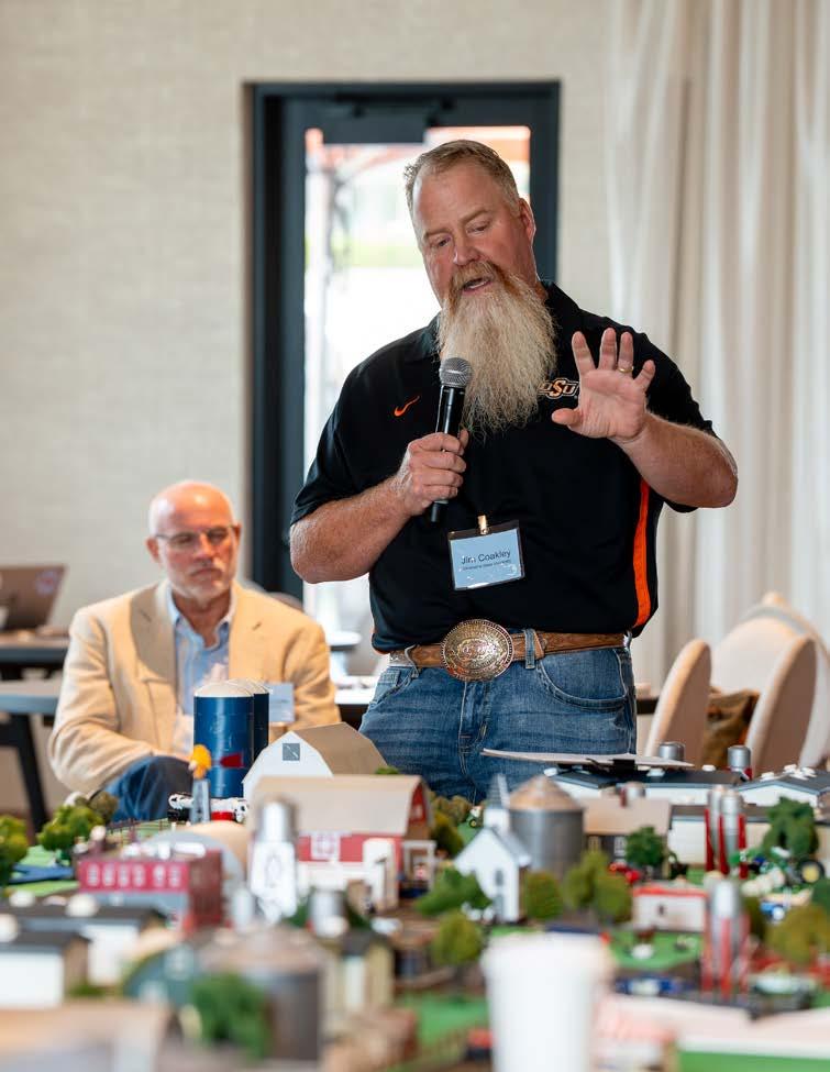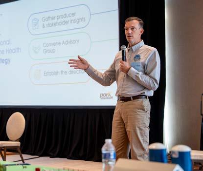 the right people together for this day of deep learning that took tough conversations from the 2023 drill to the next level. Attendees also benefited from expertise shared by partners like NPB veterinarians Dr. Patrick Webb and Dr. Dustin Oedekoven, National Pork Producers Council veterinarian Dr. Anna Forseth, State Veterinarian Dr. Rod Hall, Deputy State Veterinarian Dr. Alicia Gorczyca-Southerland, and other animal health experts. In a pictureperfect display of “One Pork” collaboration between Oklahoma’s commercial industry and show pig community, we were also thrilled to have involvement from additional board members Joe Locke from Tyson Foods and Brett Ramsey from Blue & Gold Sausage Co.