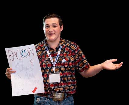 share their authentic agricultural stories into the microphone for everyone to hear. Each participant was then given a special pig pin to wear or keep as a future reminder of their duty to advocate for the industry. Four fantastic break-out sessions kept students learning and laughing all day thanks to passionate planning by Oklahoma Pork’s summer interns Ethan Drake and Chyann Emerson.