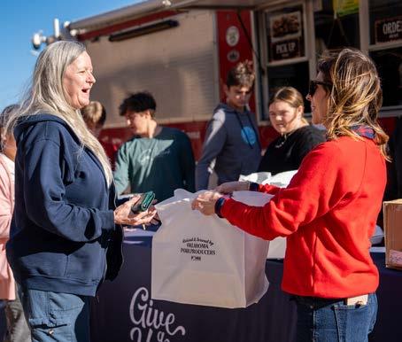 and volunteers served countless hours. Gov. Kevin Stitt joined us not just in support but also in service, working alongside our team to feed Oklahomans. That spirit of generosity reached beyond our state when the U.S. Secretary of Agriculture accepted and participated in the Give-A-Ham Challenge, recognizing Oklahoma’s heart for community on a national stage.